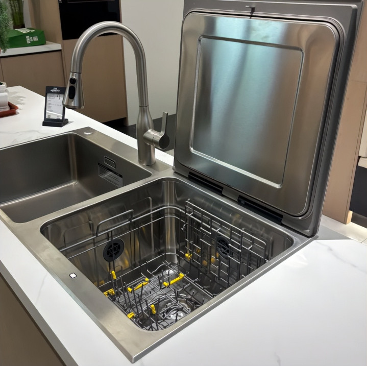 水槽式洗碗机在过去非常受欢迎,说是能节省空间,用完的厨具就立马放水槽清洁,